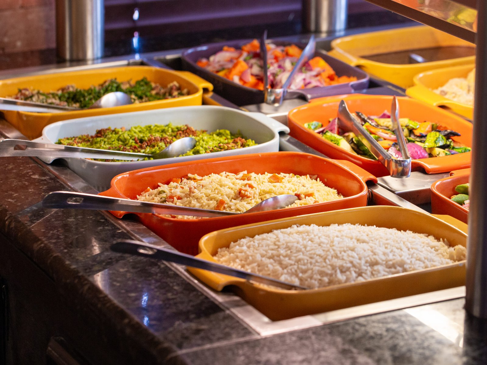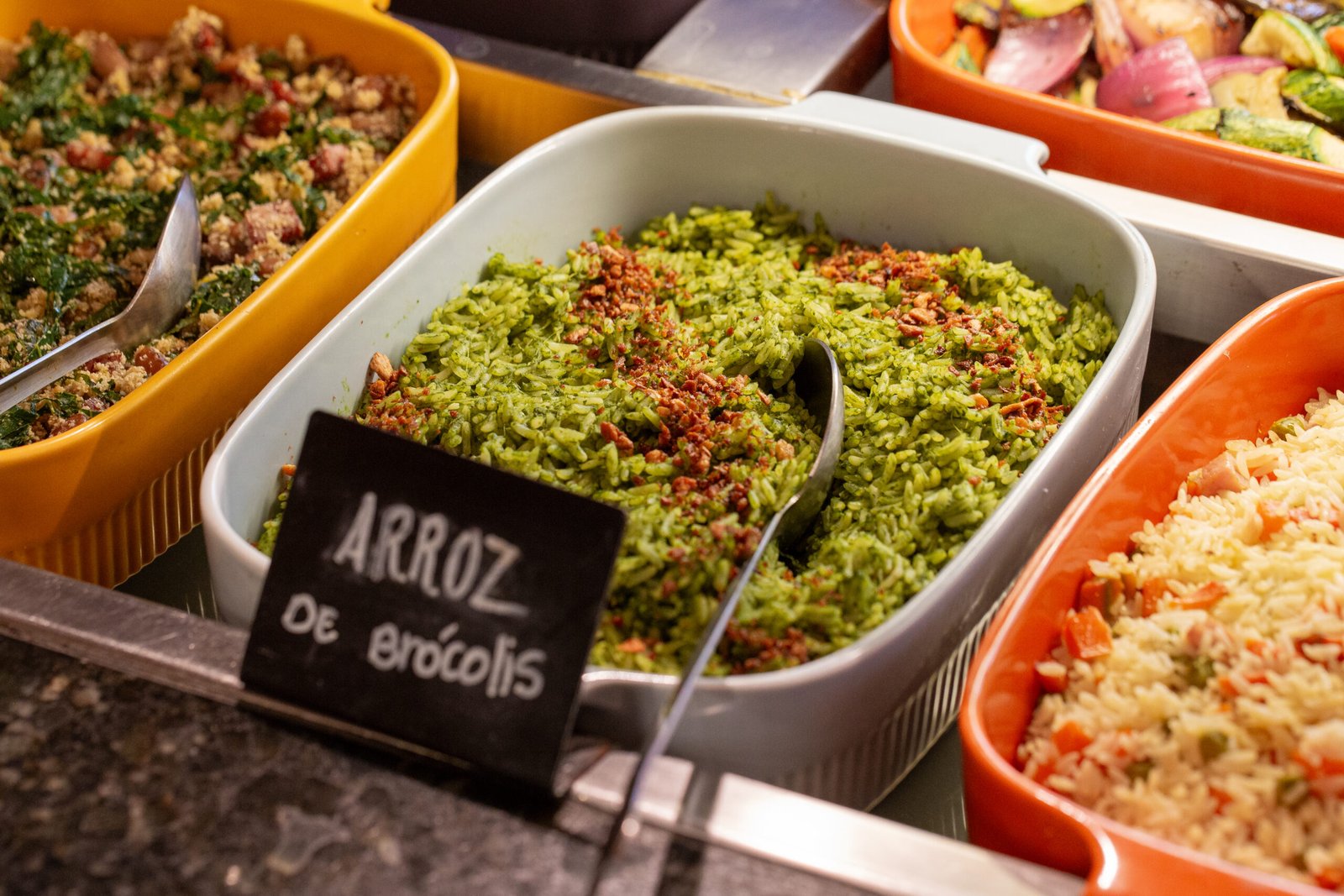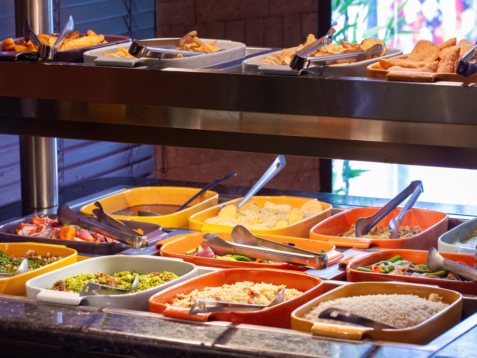 com arroz soltinho, farofa, saladas frescas, batatas e muito mais.